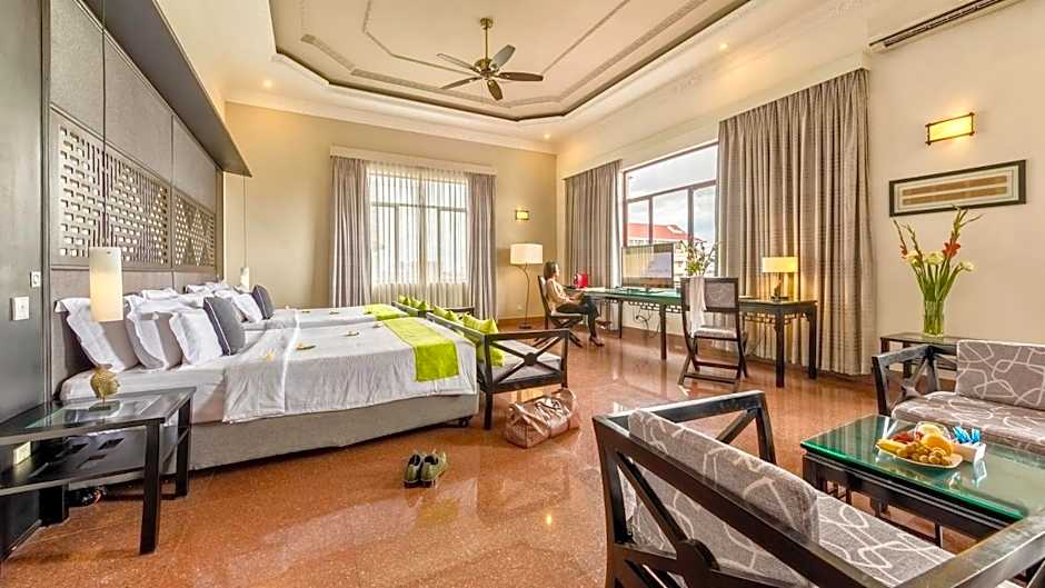 Suite size is 197 ft², with 1 king-size bed, locally-made furniture and marble floors.